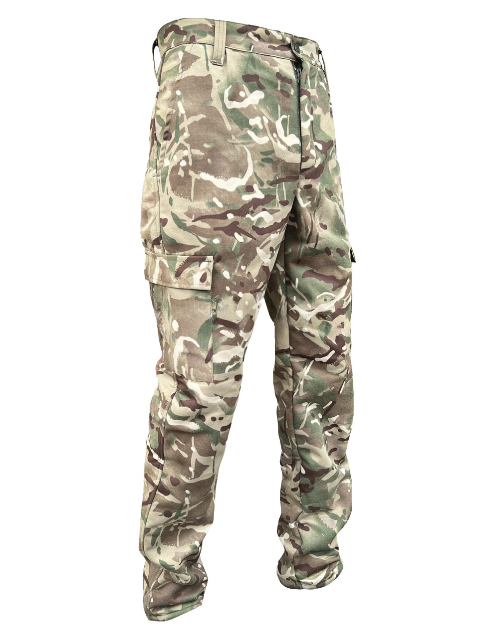 Є дві бічні врізні кишені на стегнах і дві накладні кишені з клапанами на липучках в районі колін.